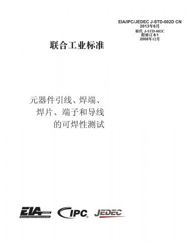 本标准规定了用于评估电子元器件引线、焊端、实芯导线、多股导线、焊片和接触片可焊性的测试方法、缺陷定义及验收标准,并附有相关图表。本标准还包括金属层耐溶蚀性/退润湿的测试方法。本标准适用于供应商和用户。J-STD-002D由EIA、IPC和JEDEC开发。