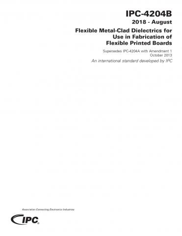 IPC-4204B establishes the classification system, the qualification and quality performance requirements for flexible metal-clad dielectric materials to be used for the fabrication of flexible printed boards. It encompasses 12 specification sheets that result from the combinations of various copper foil claddings; a polymer base dielectric selected from polyesters, polyimides, liquid crystal polymers and at least nine versions of polymer adhesives as well as adhesiveless bonding agents. The net result of these material combinations provide the industry with suitable clad, flexible dielectrics for fabricating flexible printed board interconnections. IPC-4204B also addresses how to utilize legacy designs that refer to earlier, out-of-date material designations