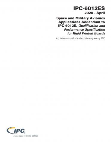 The IPC-6012ES space addendum provides exceptions to Class 3 requirements of the IPC-6012E for use in space and military avionics product. Exceptions include changes to acceptance criteria and/or sample size and test frequency for production lot acceptance testing. The IPC-6012ES covers requirements for rigid printed boards to survive vibration, extreme thermal cycling and ground testing associated with space travel environment.