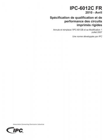 Cette norme couvre les définitions et les propriétés des circuits imprimés rigides, incluant les simple-faces, les double-faces, avec ou sans trous métallisés, les multicouches avec ou sans vias borgnes/enterrés et les circuits à âmes métalliques. Elle décrit les besoins en finitions et en renforts électrolytiques, les conducteurs, les trous et les vias, les fréquences de contrôles d’acceptabilité et les critères de qualité requis ainsi que les exigences électriques, mécaniques et environnementales. La version C inclut beaucoup de nouvelles exigences dans des domaines comme la sélection des fournisseurs, les nouvelles finitions, les épaisseurs de métallisation des trous, le measling (démouillage des fibres de verre), le weave exposure (fibres de verre non imprégnées), la couverture métallique des trous remplis, les fissures et les manques dans le stratifié, l’Etchback (attaque de la paroi du stratifié dans les trous), le remplissage des trous borgnes et enterrés, les contrôles d’acceptabilité et leurs fréquences et les exigences pour les tests de stress thermique. Cette version est synchrone avec l’IPC-A-600H. A utiliser avec l’IPC-6011. Annule et remplace l’IPC-6012B et sa modification 1. 52 pages. Mise en service en Avril(more...)