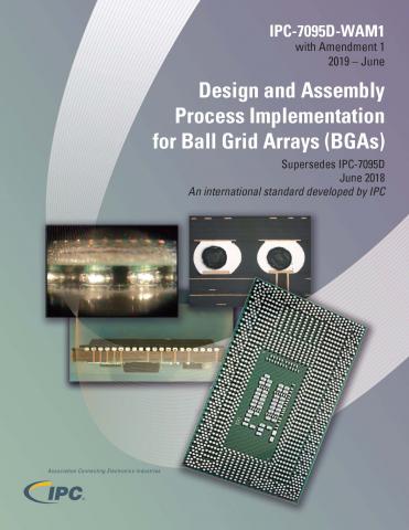 The IPC-7095D-AM1 standard describes design and assembly implementation for ball grid array (BGA) and fine-pitch BGA (FBGA) technology, focusing on inspection, repair and reliability issues associated with design and assembly of printed boards using these packages. IPC-7095D-AM1 provides the useful and practical information to those who use or are considering using BGAs. IPC-7095D-AM1 provides descriptions on how to successfully implement robust design and assembly processes for printed board assemblies using BGAs as well as ways to troubleshoot some common anomalies which can occur during BGA assembly.