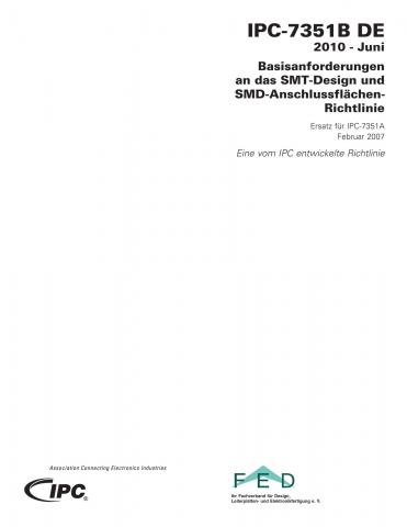 Dieses bekannte Dokument deckt das Anschlussflächen-Design für alle Typen von passiven und aktiven Bauteilen ab, inklusive MELFs, SOPs, QFPs, BGAs, QFNs und SONs. Der Standard unterstützt Leiterplatten-Designer mit durchdachten Anschlussflächen-Bezeichnungen, 0°-Drehlage der Bauteile für CAD-Systeme und drei unterschiedlichen Anschlussflächen-Geometrien (Design-Produzierbarkeitsstufen) für jedes Bauteil. Dies erlaubt dem Anwender die Anschlussflächen nach gewünschter Bauteildichte auszuwählen.