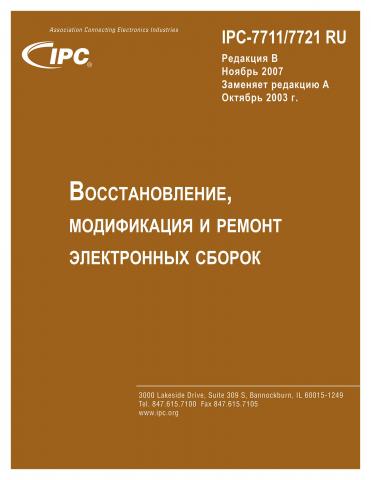 Стандарт IPC-7711/21B «Восстановление, модификация и ремонт электронных сборок» был полностью обновлен по каждой процедуре, чтобы обеспечить возможность их применения как для бессвинцовых, так и для традиционных оловянно-свинцовых электронных сборок. Это однотомное издание содержит все ранее опубликованные изменения и несколько новых процедур для компонентов BGA (включая восстановление шариковых выводов) и ремонта гибко-жестких плат. Часть 1, посвященная общим требованиям, также была обновлена с целью повышения простоты применения и содержит важные инструкции и руководства, относящиеся ко всем процедурам. Этот раздел включает общие процедуры для восстановления, ремонта и модификации. Часть 2 представляет собой стандарт IPC-7711B, процедуры которого содержат списки инструментов и материалов, а также методики, применяемые при демонтаже и установке компонентов поверхностного монтажа и монтажа в отверстия. Часть 3 – стандарт IPC-7721B – содержит процедуры для модификации электронных сборок и выполнения ремонта базового материала и проводников плат. Многие процедуры снабжены цветными иллюстрациями, помогающими пользователями лучше понять инструкцию. Заменяет IPC-7711, IPC-7721 и IPC-R-700.