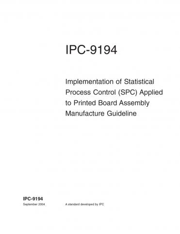This guideline standard is intended to aid in interpretation of the requirements in IPC-9191, "General Guidelines for Implementation of Statistical process Control," specifically for printed board assembly (PBA) manufacture. This document and IPC-9191 should be used together; the standards are cross-referenced to each other in the Appendices of this guideline. This standard promotes process thinking and control of process inputs, in-process parameters and process outputs, including product parameters. This standard organizes various aspects of process control in the Plan, Do, Check and Act (PDCA) cycle. This document establishes practical guidelines for the implementation of SPC in the electronics manufacturing operations for continually improving processes and reducing waste.