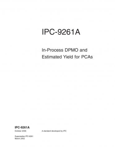 Now updated to align with IPC-7912A for end item DPMO, this document defines consistent methodologies for computation of in-process defects per million opportunities (DPMO) metrics for any evaluation stage in the assembly process. It is intended for use in measuring in-process assembly steps rather than end product determination. Calculation of completed item DPMO is addressed in IPC-7912A. A guide to defect categorization is provided that can serve as a base for summarizing and reporting in-process defects when used with J-STD-001 and IPC-A-610. It can also be used to develop process step estimated yield - the expected percentage of assemblies with no defects for a particular process step or combined process steps, based on historical defect rates.