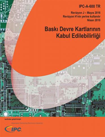 Baskı devre kartları kabul edilebilirliği için açıklamalı resimli bir rehber! Bu dört renkli döküman çıplak baskı devre kartlarında iç kısımdan ya da dışarıdan gözlemlenebilen hedef, kabul edilebilir ve uygun olmayan koşullar için fotoğraflar ve şekiller sağlamaktadır. Operatörleriniz, denetleme personeliniz ve mühendislerinizin en son yayınlanmış revizyonu kullanmasını sağlayınız. 120 adet yeni ve güncellenmiş fotoğraflar ve resimlerle revizyon J; mikro geçiş deliği kontak boyutları, kaplama, boşluklar ve dolgu, dielektriğin aşındırılması (aşındırma, leke temizliği ve tırmanma) için güncellenmiş ve genişletilmiş kapsam, kaplama bükülmesi, kenar konnektörleri için yüzey kaplaması, SMT ve BGA pedler, markalama, delik hizalama, laminat ayrılması, kapak kaplama, geçiş deliği dolgusu ve esnek devreler gibi konuları kapsamaktadır. Bu döküman IPC-6012D ve IPC-6013C ile senkronizedir. 180 sayfa. Yayın Tarihi - Mayıs 2016. Çeviri Tarihi - 05/2018