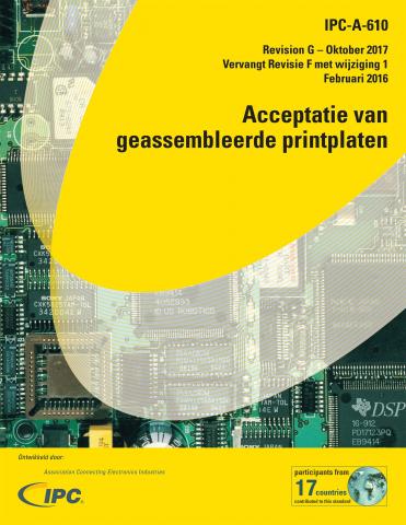 IPC-A-610 is het meest gebruikte acceptatiedocument voor elektronica-assemblage. Bijgewerkt met deelnemers uit 17 landen die input en expertise leveren, brengt dit document de nieuwste criteria samen met veel nieuwe en herziene grafische afbeeldingen uit de industrie.
