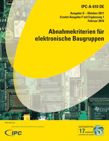IPC-A-610 ist die weltweit am meisten verwendete Abnahme-Richtlinie zur Elektronik-Montage. Aktualisiert durch das Fachwissen von Experten aus 17 Ländern, bietet dieses Dokument der Branche aktuellste Kriterien und neue bzw. aktualisierte Illustrationen.