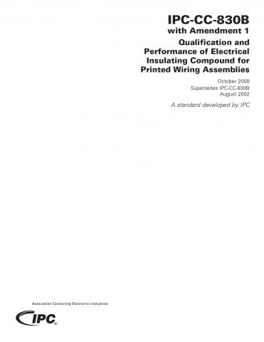 This is the industry standard for qualification and quality conformance of conformal coating. Its intent is to show how to obtain maximum information with minimum test redundancy. Includes requirements and evaluations of material properties using standardized test vehicles. Amendment 1 updates include new qualification, retention and conformance inspection requirements for FTIR, MIR and hydrolytic stability. 18 pages. Released October 2008.