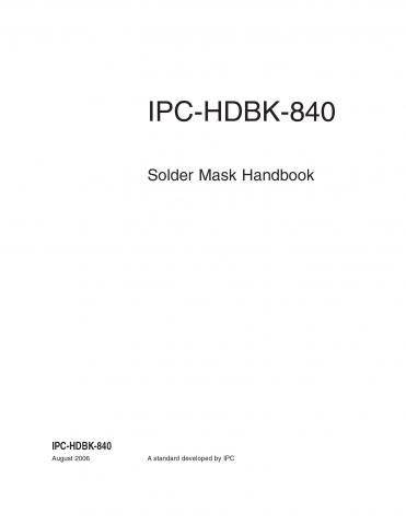 IPC-HDBK-840 supplements the solder mask requirements established in IPC specifications such as IPC-SM-840 and IPC-6012 by providing detailed information on solder mask types, application processes, pre- and post- assembly processes, characteristics and properties that are useful in the selection and use of the most appropriate mask type for a given application. Applicable to solder mask manufacturers, processing equipment manufacturers, PCB manufacturers, assembly manufacturers and ancillary chemical suppliers. 72 pages. Released September 2006.