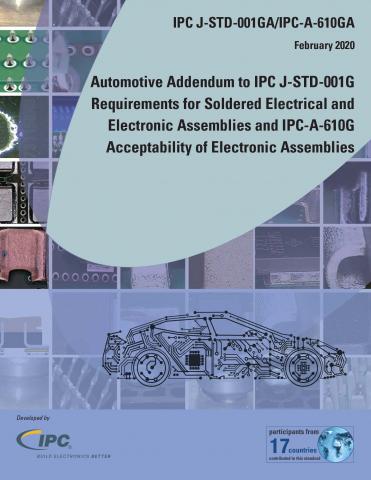 The IPC J-STD-001GA/IPC-A-610GA automotive addendum to J-STD-001G and IPC-A-610G provides criteria to ensure the reliability of mission-critical soldered automotive electrical and electronic assemblies in the field under harsh environments and considers the conditions of automated high-volume production.