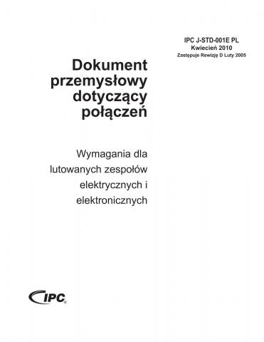 J-STD-001E jest rozpoznawany na świecie jako jedyny standard dla materiałów i procesów lutowania uznany w przemyśle. Niniejsza rewizja zawiera wskazówki dla produkcji bezołowiowej, jako dodatek dla łatwiejszego zrozumienia kryteriów dla materiałów, metod oraz weryfikacji jakości produkowanych połączeń lutowanych i zespołów. S Są tu zawarte wymagania dla wszystkich trzech klas konstrukcji. Dla jasności zostały załączone kolorowe ilustracje. Niniejszy standard całkowicie uzupełnia IPC-A-610E.