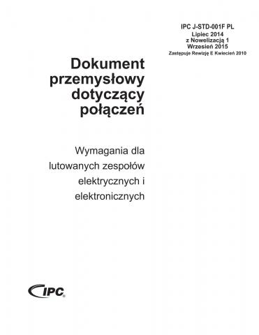 J-STD-001E jest rozpoznawany na świecie jako jedyny standard dla materiałów i procesów lutowania uznany w przemyśle. Niniejsza rewizja zawiera pomoc dla wytwarzania ze stopami ołowiowymi i bezołowiowymi. Przykładami niektórych znaczących zmian w rewizji są otwory metalizowane, PTH, wymagania na minimalne wypełnienie, kryteria dla dwóch nowych typów zakończeń SMT oraz rozszerzone kryteria dla warstwy pokrywającej. Kiedy tylko to możliwe, opisy kryteriów zostały tak dopasowane, aby uczynić je łatwiejsze do zrozumienia dla materiałów, metod i weryfikacji dla jakościowej produkcji lutowanych połączeń i zespołów. Zawarte są wymagania dla wszystkich trzech klas konstrukcji. Dla klarowności są dostarczone kolorowe ilustracje. Niniejszy standard całkowicie uzupełnia IPC-A-610F i jest wspierany przez IPC-HDBK-001.