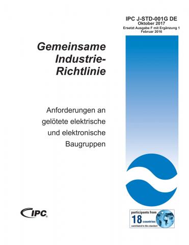 Diese Richtlinie ist ein absolutes Muss für alle, die ein Interesse an Prozess- und Abnahmekriterien für elektrische und elektronische Baugruppen haben. J-STD-001 wurde in Abstimmung mit IPC-A-610 entwickelt und wird ergänzt durch IPC-HDBK-001. Diese Ergänzung ist für diejenigen gedacht, die zusätzliche Informationen und Erläuterungen zu den Anforderungen wünschen. Übersetzt im Februar 2018.