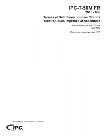 Ce document essentiel pour l’industrie fournit des descriptions et des illustrations de la terminologie de l’industrie d’assemblage électronique afin d’aider les utilisateurs et leur clients à casser les barrières linguistiques. La révision M contient plus de 220 termes nouveaux ou révisés, incluant la nouvelle terminologie pour les procédés de tropicalisation, d’enrobage et d’encapsulation, la conception d’ écran, la maîtrise statistique du procédé,et les technonologies de circuits imprimés flexibles. Elle contient également les acronymes couramment utilisés dans l’industrie. Publiée en 2015. Traduite en Juin 2015.