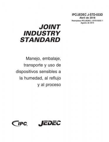 El IPC/JEDEC J-STD-033D proporciona a los fabricantes de dispositivos de montaje superficial y a los usuarios con métodos estandarizados para la manejo, embalaje, transporte y uso de componentes sensibles a la humedad/reflujo. Estos métodos ayudan a evitar daños por la absorción de humedad y por la exposición a las temperaturas de la soldadura por reflujo que pueden tener como resultado una degradación de la producción y de la fiabilidad y en componentes dañados. Los procedimientos del IPC/JEDEC J-STD-033D proporcionan una vida útil mínima en almacén de 12 meses desde la fecha de sellado cuando se implementa correctamente. Desarrollado por IPC y JEDEC. Traducido en Junio de 2018