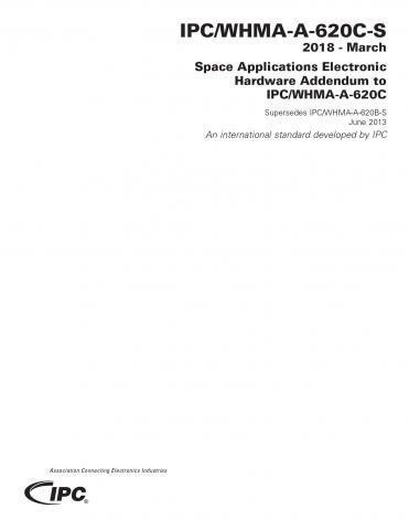 IPC/WHMA-A-620C-S provides additional requirements to IPC/WHMA-A-620C to ensure the reliability of cable and wire harness assemblies that must survive the vibration and thermal cyclic environments getting to and operating in space. The IPC/WHMA-A-620C-S space addendum cannot be used as a stand alone document, it must be used with the base standard IPC/WHMA-A-620C.