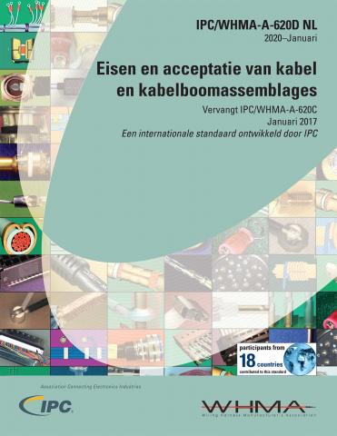IPC/WHMA-A-620D is de enige consensusstandaard in de branche voor eisen en acceptatie van kabel- en kabelboomassemblages. IPC/WHMA-A-620D beschrijft materialen, methoden, tests en acceptatiecriteria voor het produceren van krimp-, mechanisch beveiligde en gesoldeerde verbindingen en de bijbehorende assemblageactiviteiten in verband met kabels en kabelbomen.