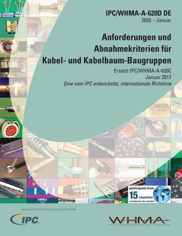 IPC/WHMA-A-620D ist die einzige, im Branchenkonsens entwickelte Richtlinie für Anforderungen und Abnahmekriterien für Kabel- und Kabelbaum-Baugruppen. IPC/WHMA-A-620D beschreibt Materialien, Methoden, Tests und Abnahmekriterien für die Herstellung gecrimpter, mechanisch gesicherter oder gelöteter Verbindungen und die zu den Kabel- und Kabelbaum-Baugruppen zugehörigen Montageaktivitäten.