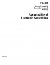 IPC-A-610H er den mest udbredte godkendelsesstandard for elektronikprodukter i elektronikindustrien. IPC-A-610H standarden inkluderer en generel opdatering af dokumentet, introducere flere nye overflademonterede komponenttyper og fjerner ”Ønskelig” tilstand. Deltagere fra 29 lande leverede deres input og ekspertise til at bringe dette dokument til elektronikindustrien. Dette er en ”skal have”...